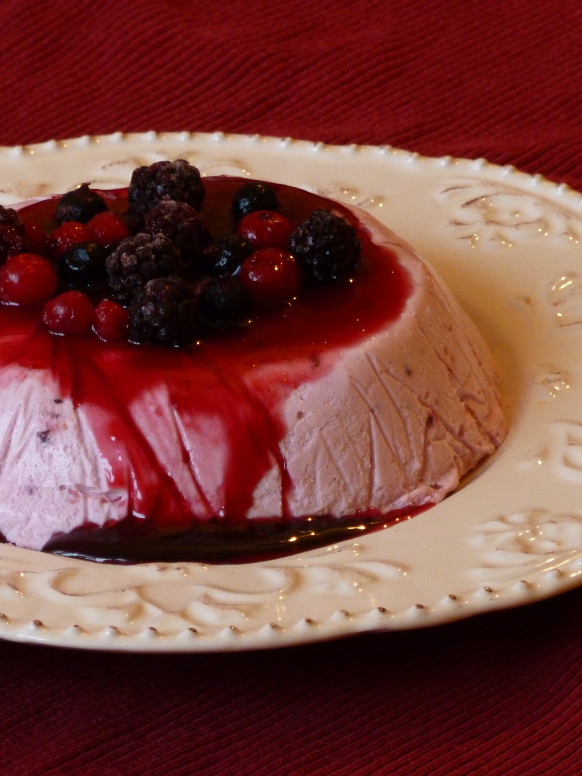 Íme a recept: A krémhez: 35 dkg natúr joghurt, 2 dl bármilyen gyümölcsös joghurt, 3 dl tejszín, kb. 15 dkg-nyi gyümölcs- jelen esetben volt fagyasztott málna, fekete és piros ribizli, szeder, és 1 mandarin- 2 dl tej, 20 g zselatin, 3 evőkanál méz, 5 dkg -vaníliás cukorral izesitett- tehéntúró, 2 evőkanál barna cukor, csipetnyi só.